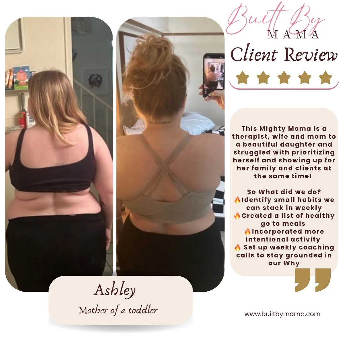 Built by Mama Coaching is where moms trade quick fixes for real, lasting change. We believe you don’t need shots or surgeries; you need skills, support, and a coach who understands the demands of motherhood. Our approach empowers you to fuel your body, build confidence, and create sustainable habits that fit your busy life. Because true strength isn’t found in a syringe, it’s built by mama, for life.